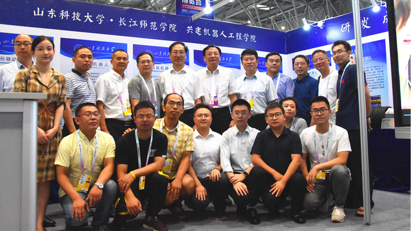 孙鹤汀应邀出席“2019中国国际智能产业博览会”的开幕式,并与长江师范学院党委书记彭寿清一同到“智博会”现场,参观了学生研发成果展和成果应用展。两校联合参展从8月26日持续到29日,伟德bv国际体育展示了智能假肢机器人、变形移动机器人、动物机器人、喷浆机器人等6款研发机器人,参展作品得到了多位市领导、厂家和参展群众的好评。