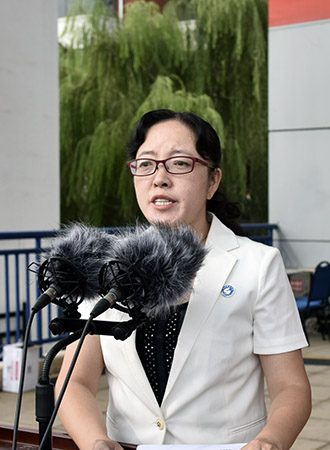 典礼上,教师代表化工学院徐冬梅在发言中寄语全体新生,尽快树立短期及长期目标,学会自学,学会主动学习,努力培养各方面的能力和素质,并表达了作为教师立德树人,以敬业、务实、奉献的精神与同学们携手并肩、共同努力的心愿;新生代表电信学院通信工程专业吴迪同学在发言中表达了做坚定理想、脚踏实地的奋斗者,掌握本领、躬身实践的奉献者,勇于担当、一往无前的搏击者的信心和决心。典礼上,还举行了佩戴校徽及宣誓仪式,全体新生面对国旗,立下了“爱党爱国,牢记使命;爱校荣校,勤学笃行;惟真求新,敢于担当;坚韧不拔,发奋图强;不忘初心,勇做新时代追梦人”的铮铮誓言。