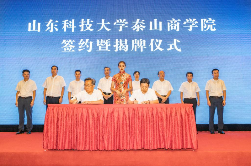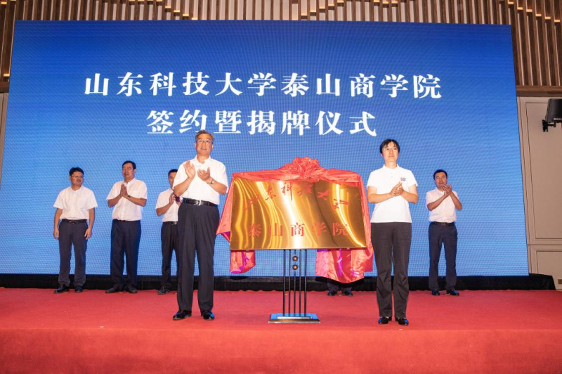 校党委副书记兼泰安校区党委书记、管委会主任王少鹏,泰安市人民政府副市长成丽为“伟德bv国际体育泰山商学院”揭牌。泰山区委书记赵斌致辞。江苏河海新能源股份有限公司董事长杨家华介绍共建情况。泰安校区党委副书记王民、江苏河海新能源公司副总裁兼泰山创新动力港有限公司董事长张纯刚代表校企双方签订《共建商学院协议书》。仪式由泰山区委副书记、区长王爱新主持。