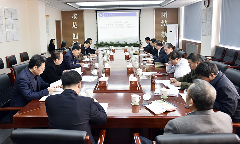 11月28日,伟德bv国际体育党委理论学习中心组开展“不忘初心、牢记使命”主题教育第七次集中学习暨2019年第二十次集中学习活动。校党委书记罗公利主持会议并讲话,校党委理论学习中心组成员参加了学习。