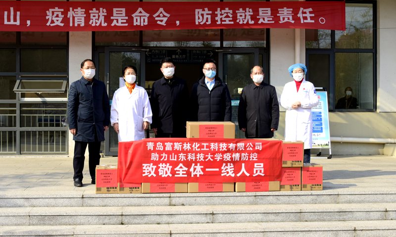 “这些口罩是用我们公司研发的材料生产的,支持母校工作,是我们的心意。”3月4日,校友企业青岛富斯林化工科技有限公司向学校捐赠一批防疫物资,用于支持母校疫情防控工作。