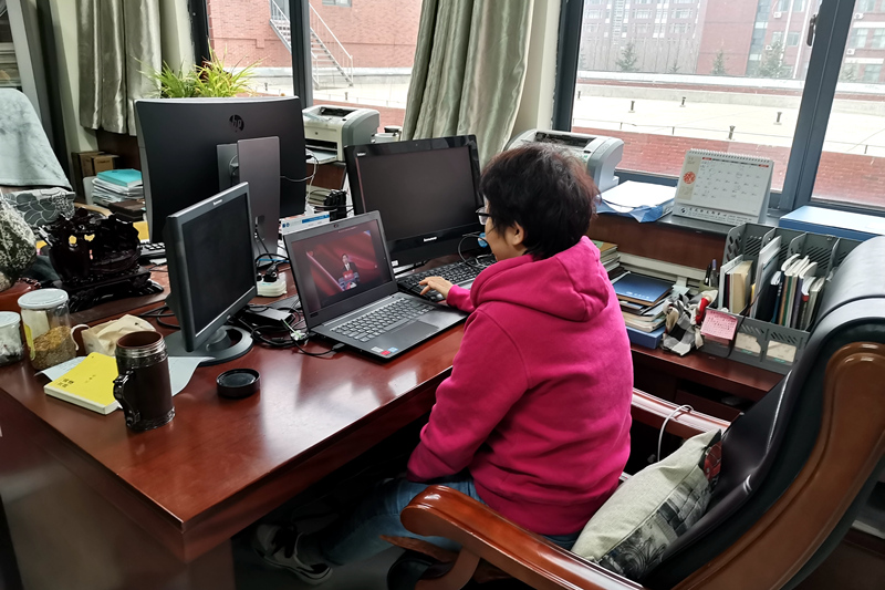 教师在收看疫情防控思政大课