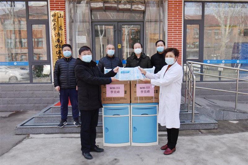 3月10日上午,财经系会计2010级校友李克峰捐赠的4000个医用口罩送达校区,用于支持母校疫情防控工作。济南校区管委副主任郭加书,财经系、后勤管理部负责人等参加捐赠仪式。