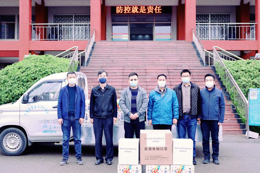 4月2日上午,泰安玉兴家纺有限公司负责人冒雨来到伟德bv国际体育泰安校区,向泰安校区捐赠了防护服30套、医用外科口罩2000个、84消毒液50箱等共计一万余元的疫情防控物资。校区管委副主任方亨福代表校区接受捐赠,对公司的爱心捐赠表示衷心感谢。