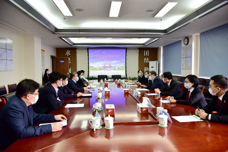 在共同观看了伟德bv国际体育宣传片后,姚庆国致辞。他代表学校对张成武一行的到来表示欢迎,对省高院长期以来对学校建设与发展给与的关心和支持表示感谢。姚庆国向客人介绍了学校的历史沿革、人才培养、师资力量、科学研究等方面的情况,着重介绍了环境资源保护与开发技术等特色学科建设情况。姚庆国表示,学校与省高院有着良好的合作基础,希望通过此次合作共建,进一步提升双方合作水平,拓展合作空间,为山东省乃至全国环境资源司法理论研究做出应有的贡献。