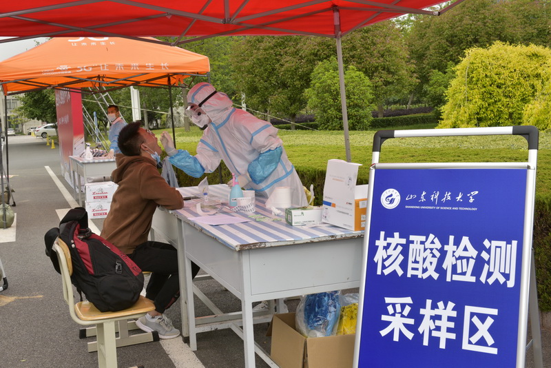 返校学生进行核酸检测采样