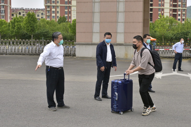 在首批学生返校的日子,为切实保障好返校学生的健康安全,学校精心部署学生返校的各个环节,各部门与各学院协同作战、多措并举,全方位立体化保障学生“安心回家”。自早晨6:30起,校领导、相关职能部门和各二级学院负责人以及辅导员等便开始等候返校学生,迎接学生重返校园。