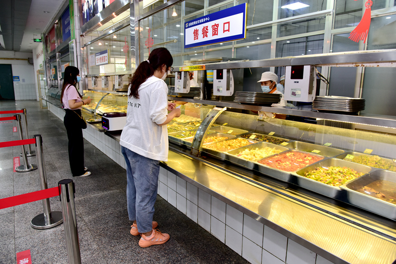 “天气太热,不想去食堂了,我选了一份12元的套餐,里面有红烧肉,看上去挺有食欲的。价格设定的也比较合理,在学校就餐还是很方便的。”交通学院车辆工程专业2018级学生王凤舰表示。为尽可能为同学们提供便利,也最大限度降低食堂密集度,学校在宿舍楼前等多处设置了外卖售餐点,提供6-12元不等的盒饭,满足不同学生就餐需要。
