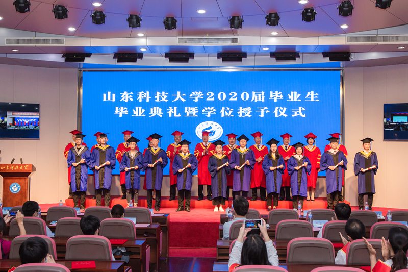 6月24日,伟德bv国际体育在逸夫讲堂举行2020届毕业生毕业典礼暨学位授予仪式,送别一万余名毕业生。受疫情影响,学校在严格落实疫情防控要求前提下,100多名毕业生代表在现场参加典礼仪式,典礼为青岛、泰安、济南三地视频典礼,更多师生通过网络直播方式参加“云典礼”。
