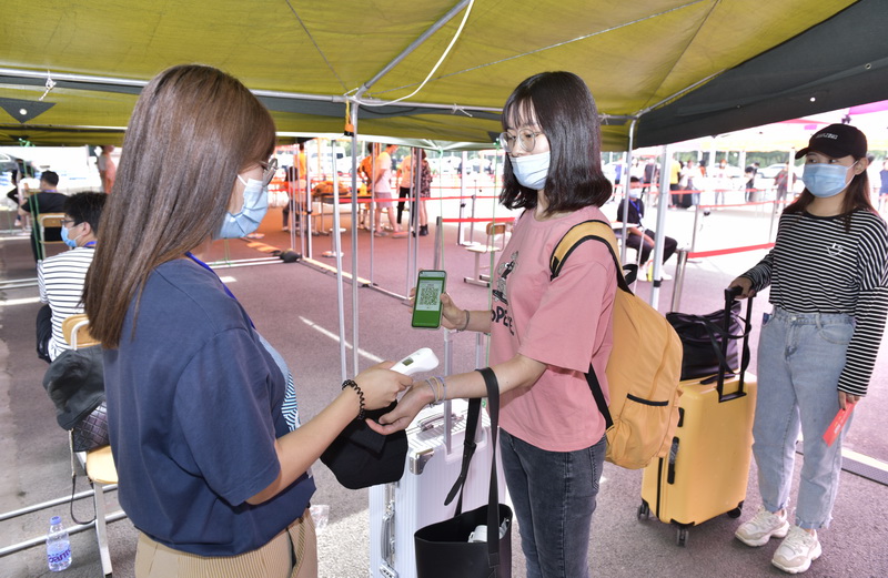 迎新现场,党委学校办公室、研究生院、学生工作处、团委、安全管理处、后勤管理处、网络安全与信息化办公室等部门的工作人员和来自各个学院的志愿者在各自的岗位上忙碌着,认真、耐心地引导帮助新生。体温检测、健康码查验、身份信息核对、物品消杀等环节井然有序,前来报到的研究生“刷脸”报到,所有手续“一站式”解决;工作人员和大学生志愿者认真热情地做好服务工作,为新生答疑解惑、搬运行李,解除新生入校困难……