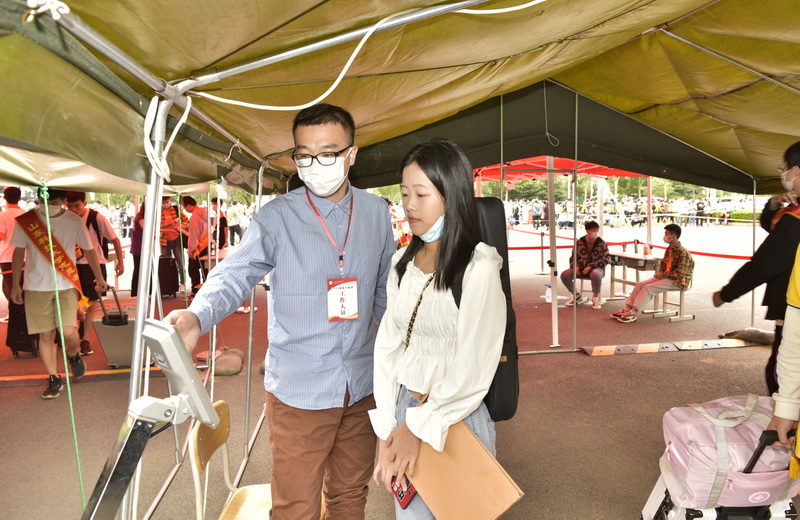 “独自入校,是大学精彩生活的开场礼。”土建学院土木类专业新生甘永杰是湖北黄冈人,他表示,在战“疫”之中,山东省对口支援黄冈市,从那时起,就决定要报考山东的高校,来到伟德bv国际体育,是圆了自己的梦。到达学校后,他在志愿者帮助下,独自带着行李开启了入学报到模式。在新生专用通道,经过测体温、物品消杀,出示健康码、身份证、录取通知书等证件后,他顺利完成了报到。虽说家长不在身边,但一切都很顺利,无论是搬运行李,还是办理手续,都有志愿者全程指导。
