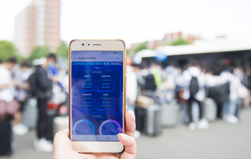 大数据实时显示新生报到情况(摄影:韩伟)
