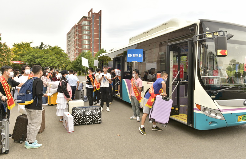 在迎新现场,精简顺畅的报到流程,细致入微的关怀服务,各具特色的迎新方式,让新生一入校园就感受到来自“家人”的关怀。前来报到的新同学“刷脸”报到,入学手续“一站式”解决;为了减轻新生路途周折,学校在火车站、汽车站设置接站点,在校内设置摆渡车将新生和行李接送至各学院迎新站;工作人员和大学生志愿者认真热情地做好服务工作,为新生答疑解惑、搬运行李,解除新生入校困难……新生报到期间,从火车站、汽车站的迎新前沿,到校园内外的迎新现场,处处洋溢着欢声笑语,充满着爱的暖流。