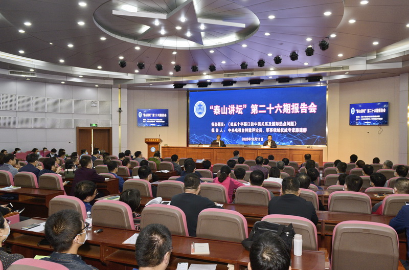 10月11日,学校举办“泰山讲坛”第二十六期报告会,伟德官网特聘教授、外交部中国国际问题研究院美国研究所所长滕建群作当前国际形势的专题报告。
