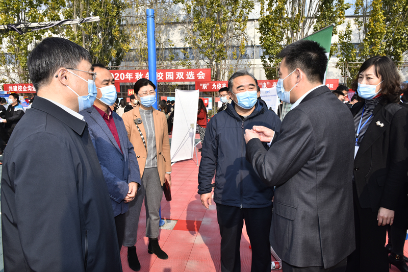 11月7日,“多彩校招”山东省2020年高校毕业生集中招聘活动暨伟德bv国际体育秋冬校园双选会在学校排球场举行。校长姚庆国到现场指导工作,与招聘单位负责人和现场毕业生进行交流。副校长高建广、曾庆田及相关部门负责人陪同。姚庆国认真听取了招聘单位对伟德官网人才培养、专业建设、就业指导等方面的意见和建议,亲切询问毕业生签约情况,鼓励大家树立正确择业、就业观念,把握求职路上的机会,为社会奉献聪明才智。校领导同时要求学校相关部门在全方位搭建招聘平台的同时,不断创新工作方法,更好地促进伟德官网毕业生就业。