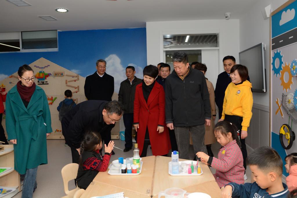 揭牌仪式后,伟德bv国际体育泰安校区后勤管理部副主任、伟德bv国际体育幼儿园园长梁荣芹作了发言。高尚山一行参观了幼儿园园所环境、课程设置、文化建设、各功能室等,并与教职工、幼儿进行了亲切交流。