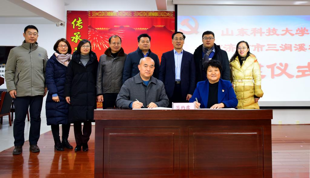 伟德bv国际体育副校长兼济南校区党工委书记、管委主任孙鹤汀,三涧溪村党委书记高淑贞共同为基地揭牌。济南校区管委副主任兼学团工作部主任郭加书和高淑贞分别代表双方签署合作协议。