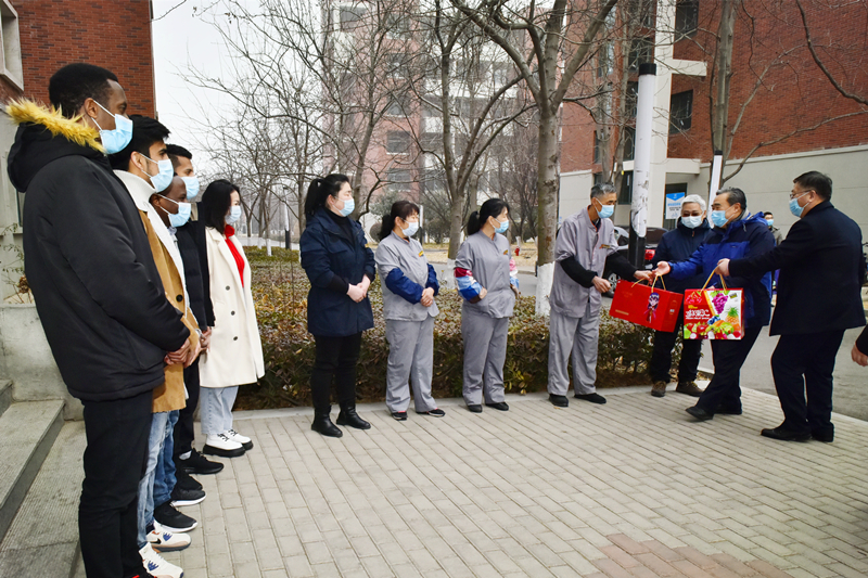 2月11日上午,伟德bv国际体育校长姚庆国、副校长张英杰看望慰问了春节期间坚守工作岗位的部分单位值班人员,为他们送去节日的慰问和新春的祝福。