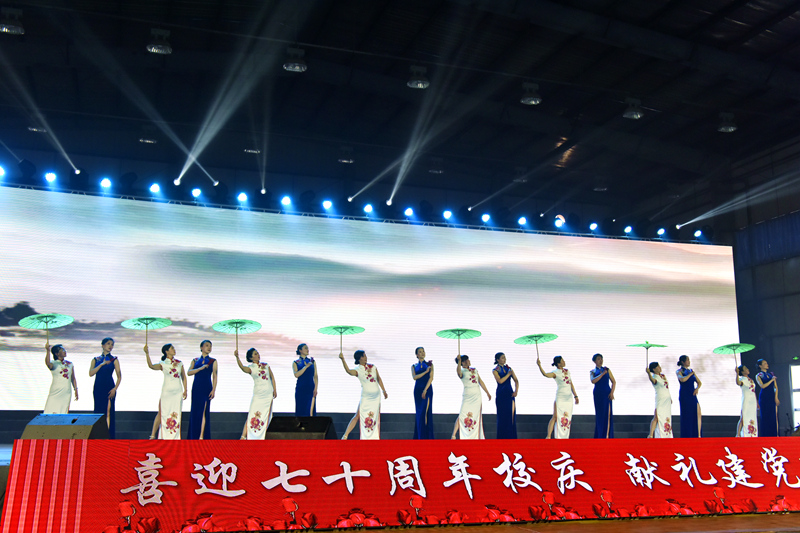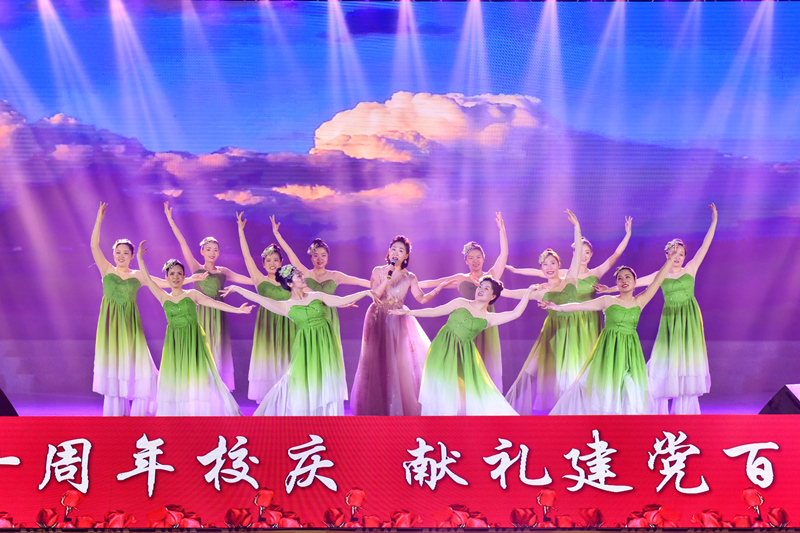 9日下午,演出现场洋溢着喜庆热烈的气息,教职工们载歌载舞,师生观众们笑逐颜开。艺术学院师生、有关教职工协会及金晶民族乐团、萨克斯风乐团等文艺社团共200余名演员,经过紧张准备,以歌舞、朗诵、器乐演奏等丰富多彩的形式,为师生观众奉送上15个精彩纷呈的节目,讴歌新时代,展现新风采,喜迎建校七十周年校庆,礼赞建党一百周年华诞。演出以全场人员合唱《伟德bv国际体育校歌》完美落幕。演出结束后,学校领导亲切慰问演职人员并同大家合影留念。