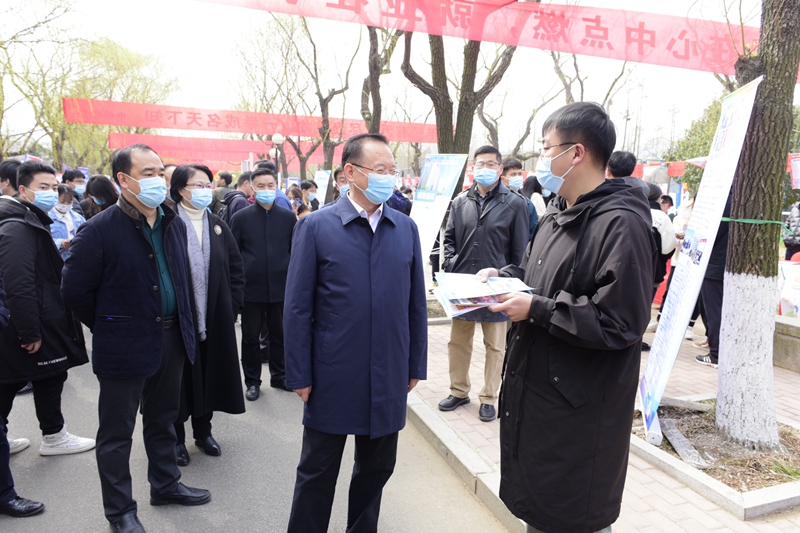 校领导、校党委领导班子成员罗公利、李玉霞、曾庆田、李克周到招聘会现场调研就业情况,指导就业工作。罗公利不时和企业代表交流“这次要招聘多少人?招的怎么样?”他感谢用人单位对学校人才培养质量的信任,认真听取了用人单位对伟德官网人才培养、就业指导等方面的建议。校领导在现场亲切询问毕业生签约情况,鼓励大家在广阔的市场环境中实现自己的人生价值,同时要求学校相关部门不断创新工作方法,更好的促进学校毕业生就业。
