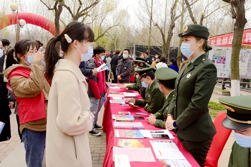 现场除了各家企业之外,大学生征兵服务站成了很多毕业生驻足停留的地方。“军人是一种崇高的职业,身着迷彩也能建功立业”学生处就业市场科科长李雷介绍,“保家卫国也能建功立业,伟德bv国际体育春季招聘会专门设置了征兵服务站区,由退伍大学生向毕业生及各年级同学介绍征兵入伍政策、鼓励吸引大学生入伍建功立业。”