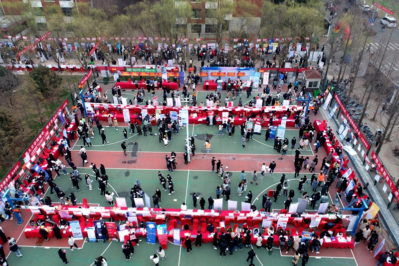 为让同学们精准捕捉匹配的职位再来现场,“线上线下”双保险促就业,外国语学院师生在招聘会现场做起了直播。外国语学院团委书记田禹表示:“学院有些同学没来现场,加上招聘会企业比较多,来的同学也可能有遗漏,我们就现场直播,精准介绍职位,让毕业生有备而来。”