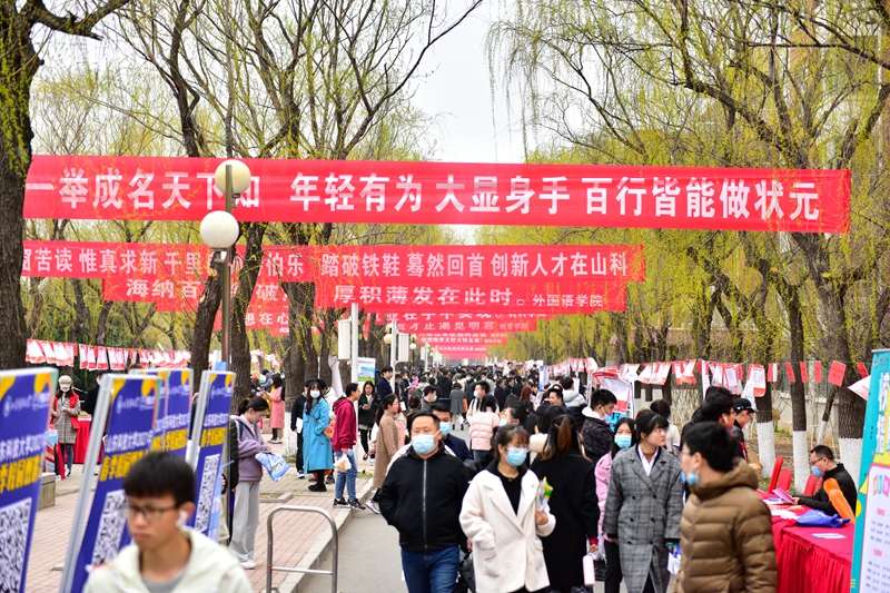 据介绍,“就选山东”山东省2021年高校毕业生集中招聘活动暨伟德bv国际体育春季校园双选会在山科大校园采取户外方式举办,也是2021年学校首场大型线下双选会,吸引了来自山东、北京、上海、广东等20个省市的760余家用人单位参会,提供就业岗位31000余个,招聘岗位涵盖本硕博各学历层次,当天7000余名毕业生来到招聘现场。各学院领导、班主任、系主任、辅导员也纷纷来到现场了解用人单位需求、推荐毕业生。