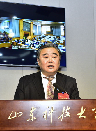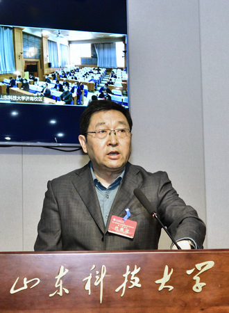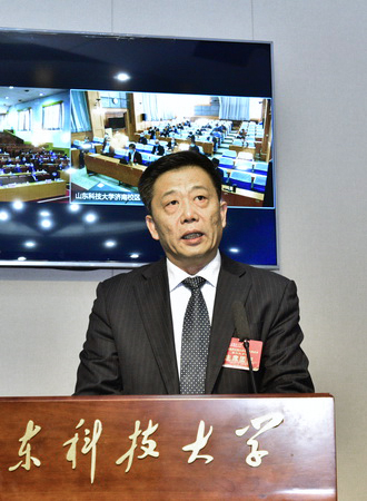 大会为三地视频会议,在青岛校区设主会场,在泰安校区、济南校区设分会场。来自全校13个代表团的314名正式代表,部分不在岗及离退休的原校党政领导,有突出贡献的中青年专家,全国、省、市人大代表、政协委员,各民主党派主要负责人等参加了会议。