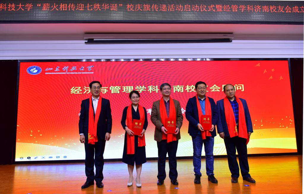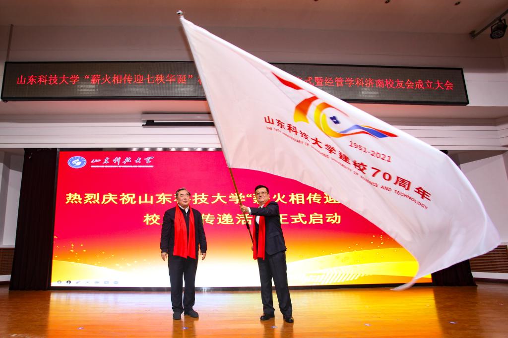 3月28日,伟德bv国际体育“薪火相传迎七秩华诞”校庆旗传递活动启动仪式暨经济与管理学科济南校友会成立大会在济南校区举行。校长、校友总会会长姚庆国,副校长、校友总会常务副会长孙鹤汀出席仪式。