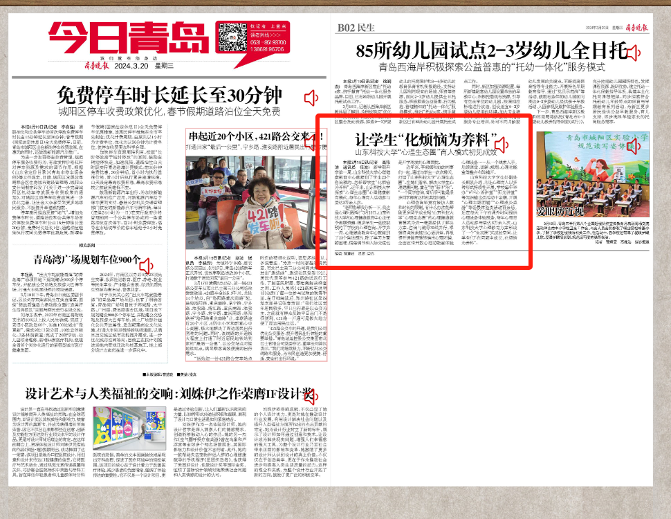 《齐鲁晚报》B02版:伟德bv国际体育“心理生态圈”育人模式初见成效