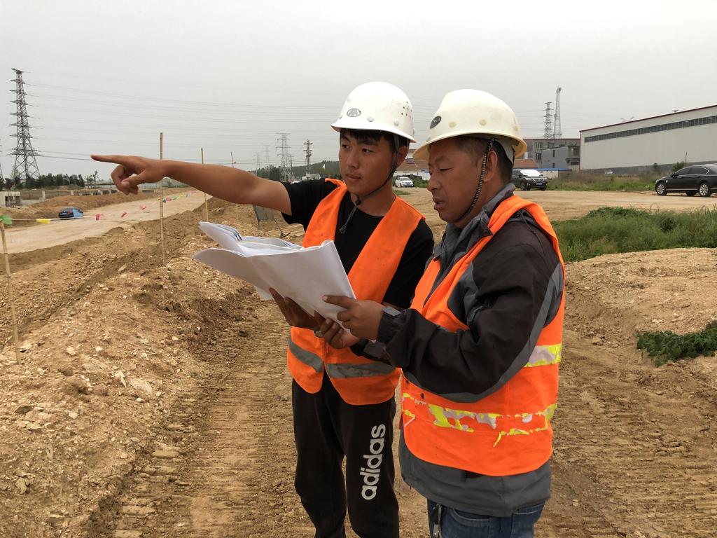 周仕林(左)在项目现场工作