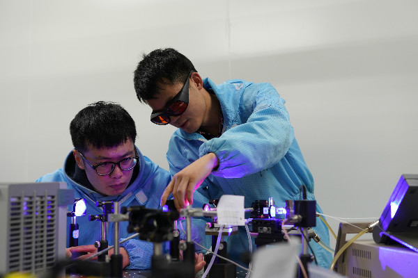 科研人员在进行可见光波段的超快激光器件研究