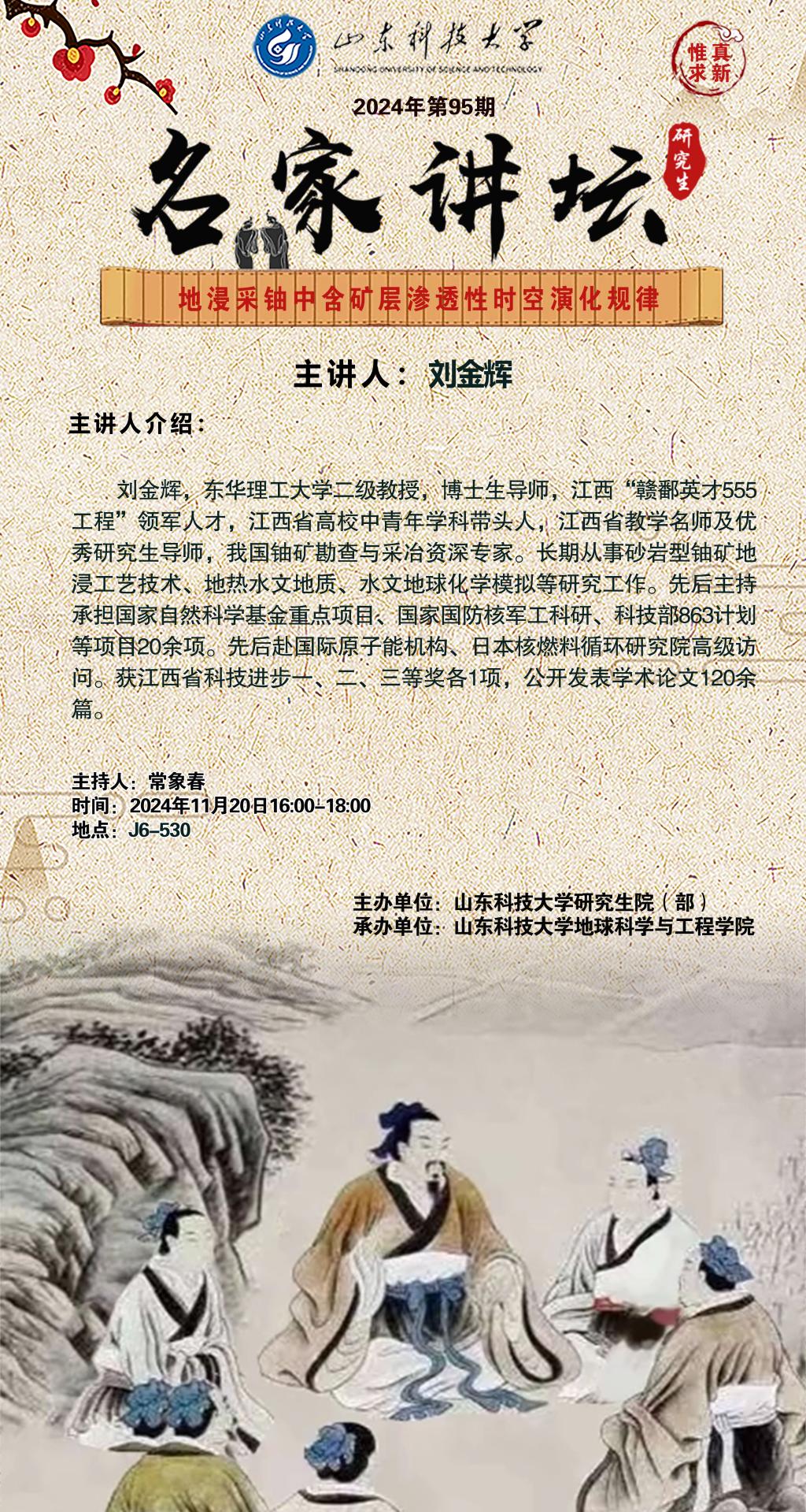 “名家讲坛”2024年第95期:地浸采铀中含矿层渗透性时空演化规律(总989期)