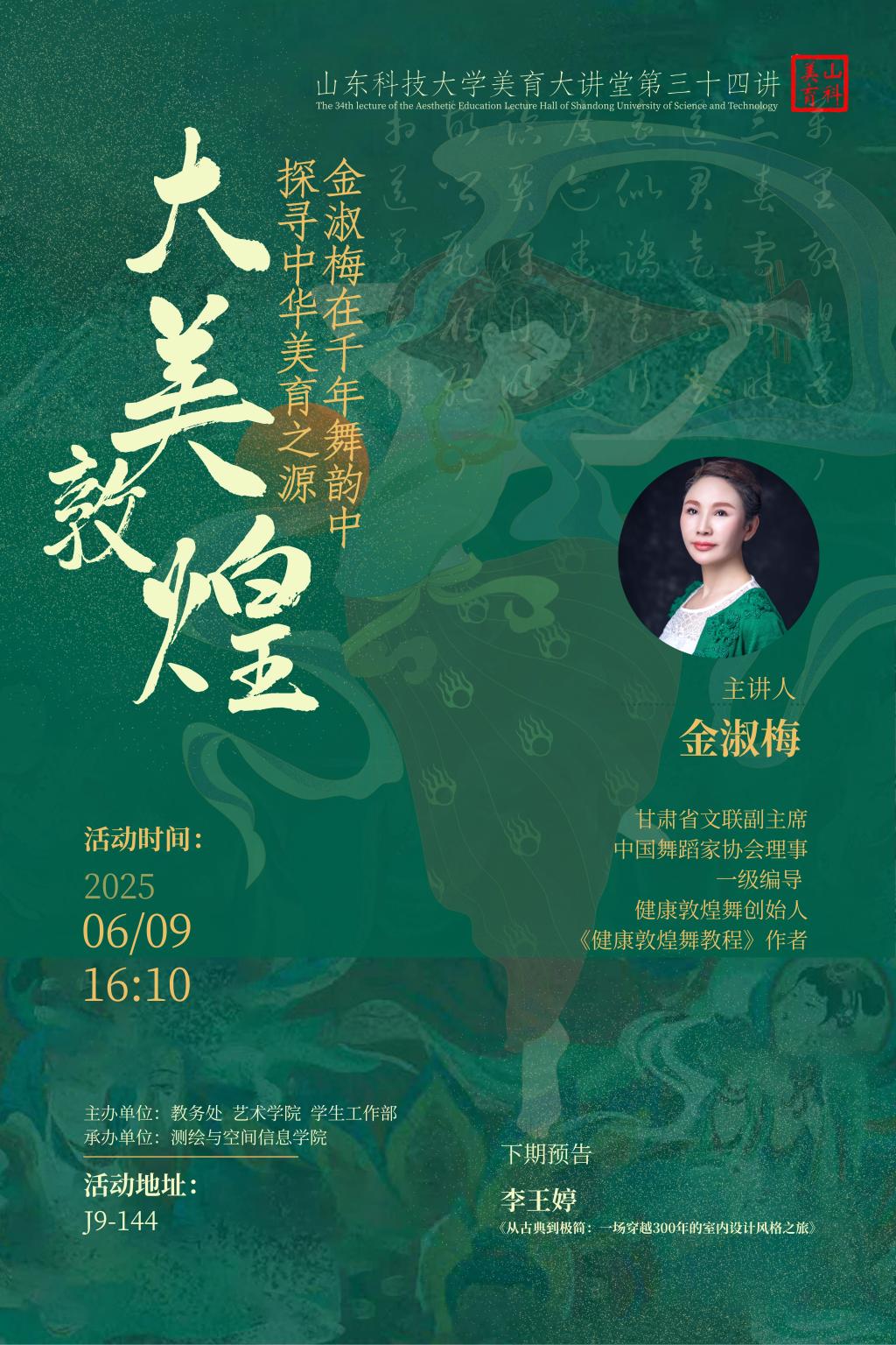 【山科美育】伟德bv国际体育美育大讲堂第三十四讲《大美敦煌:金淑梅在千年舞韵中探寻中华美育之源》