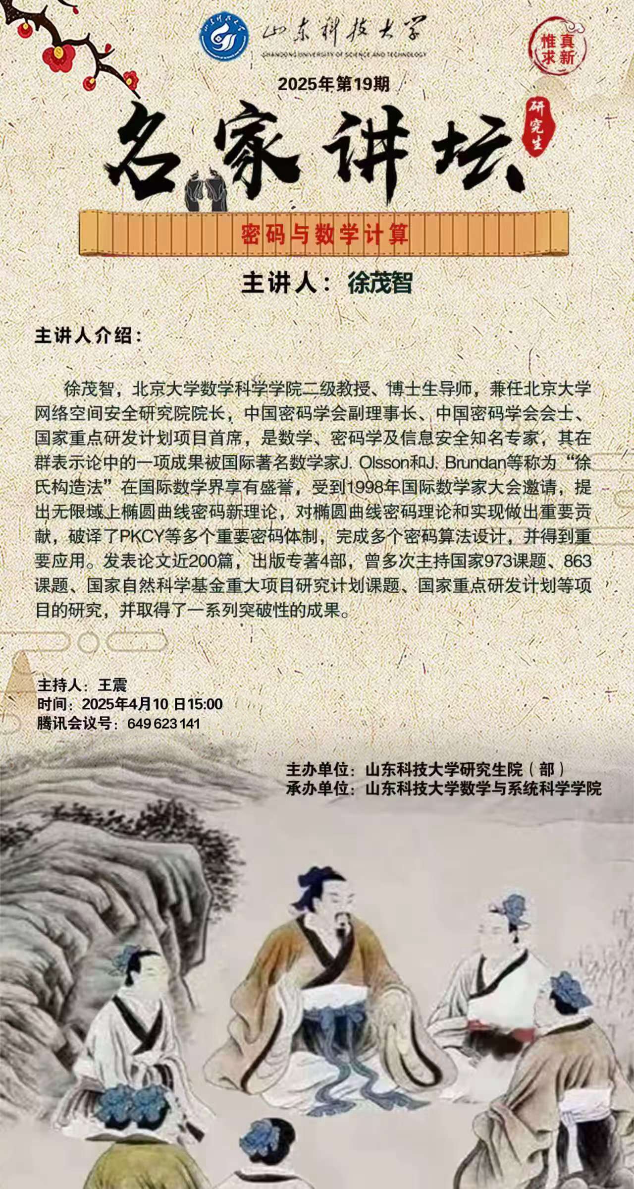 “名家讲坛”2025年第19期:密码与数学计算(总1024期)
