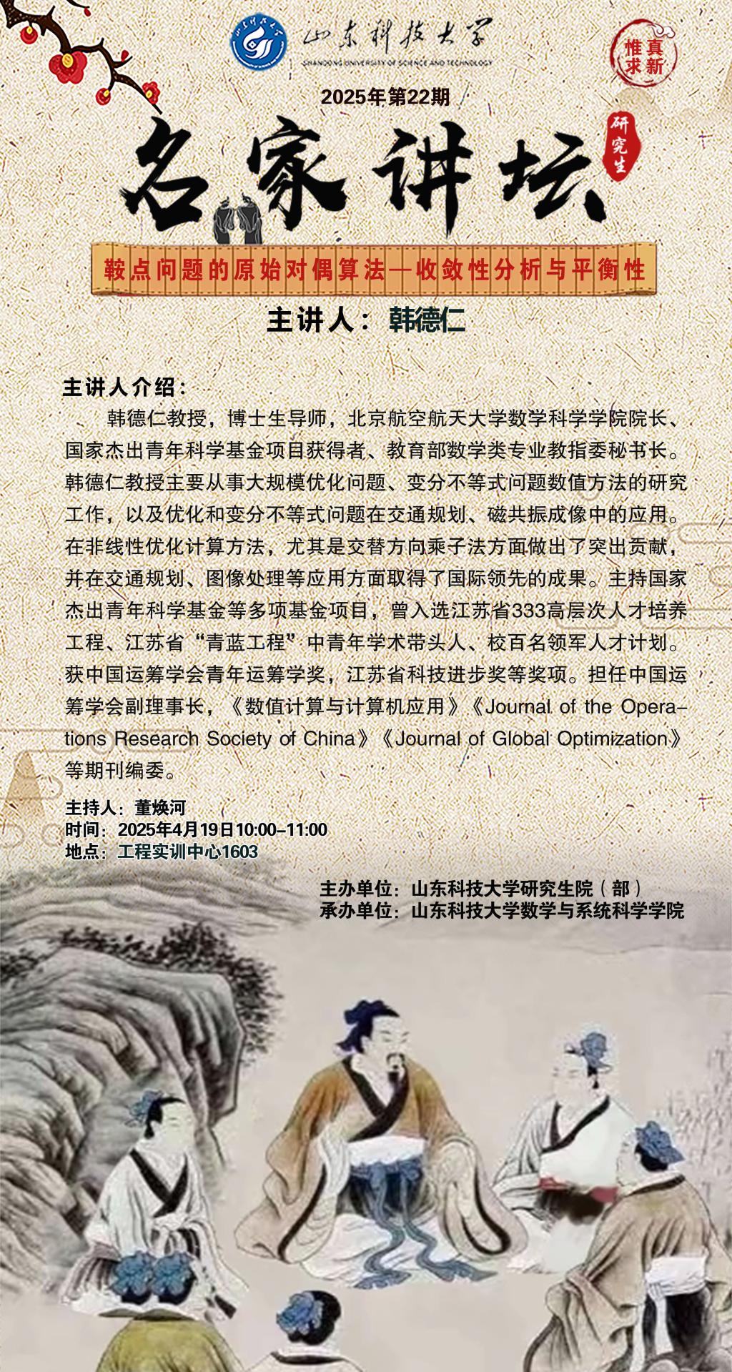 “名家讲坛”2025年第22期:鞍点问题的原始对偶算法—收敛性分析与平衡性(总1027期)