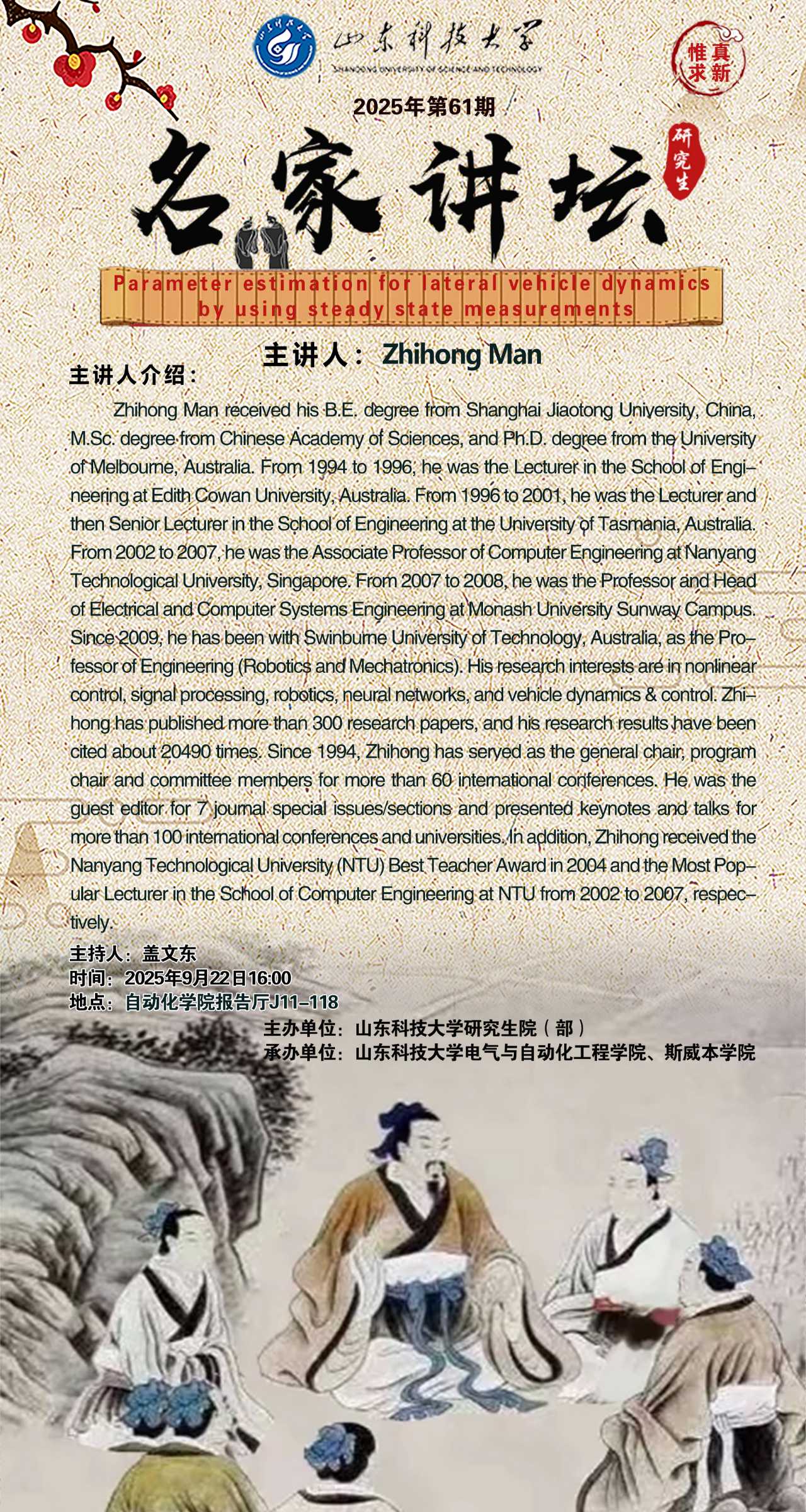 “名家讲坛”2025年第60期:New Topics in Information and Control Systems with connection to CRT(总1065期)