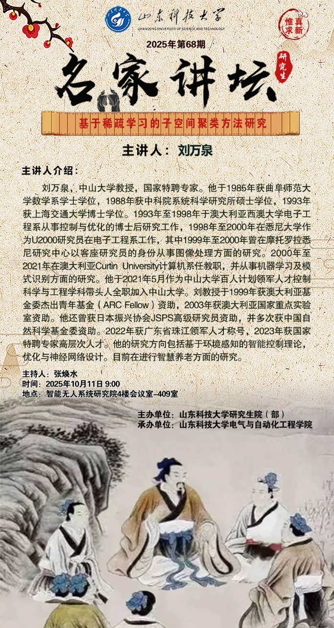 “名家讲坛”2025年第68期:基于稀疏学习的子空间聚类方法研究(总1073期)
