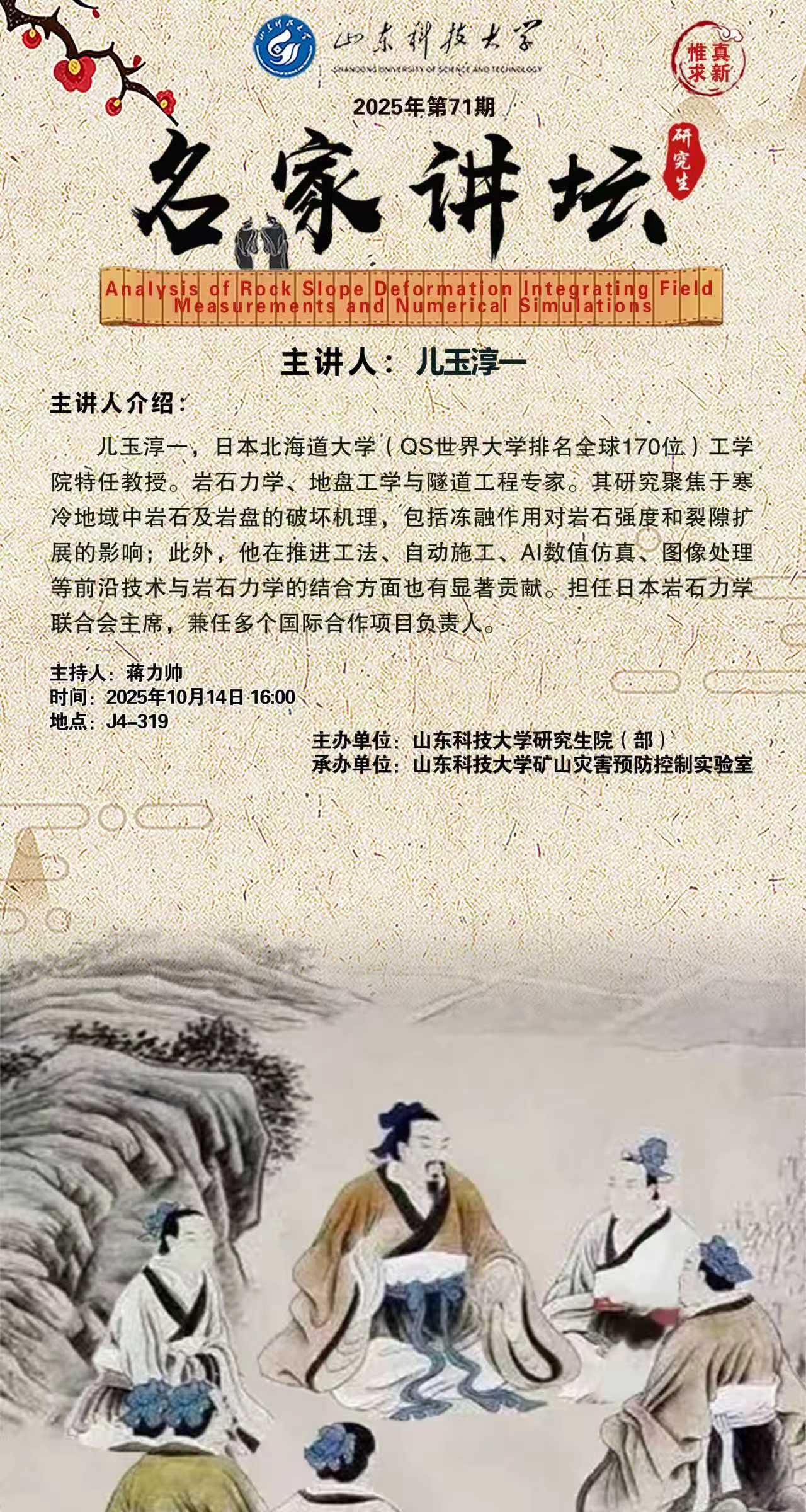 “名家讲坛”2025年第71期:Analysis of Rock Slope Deformation Integrating Field Measurements and Numerical Simulations(总1076期)