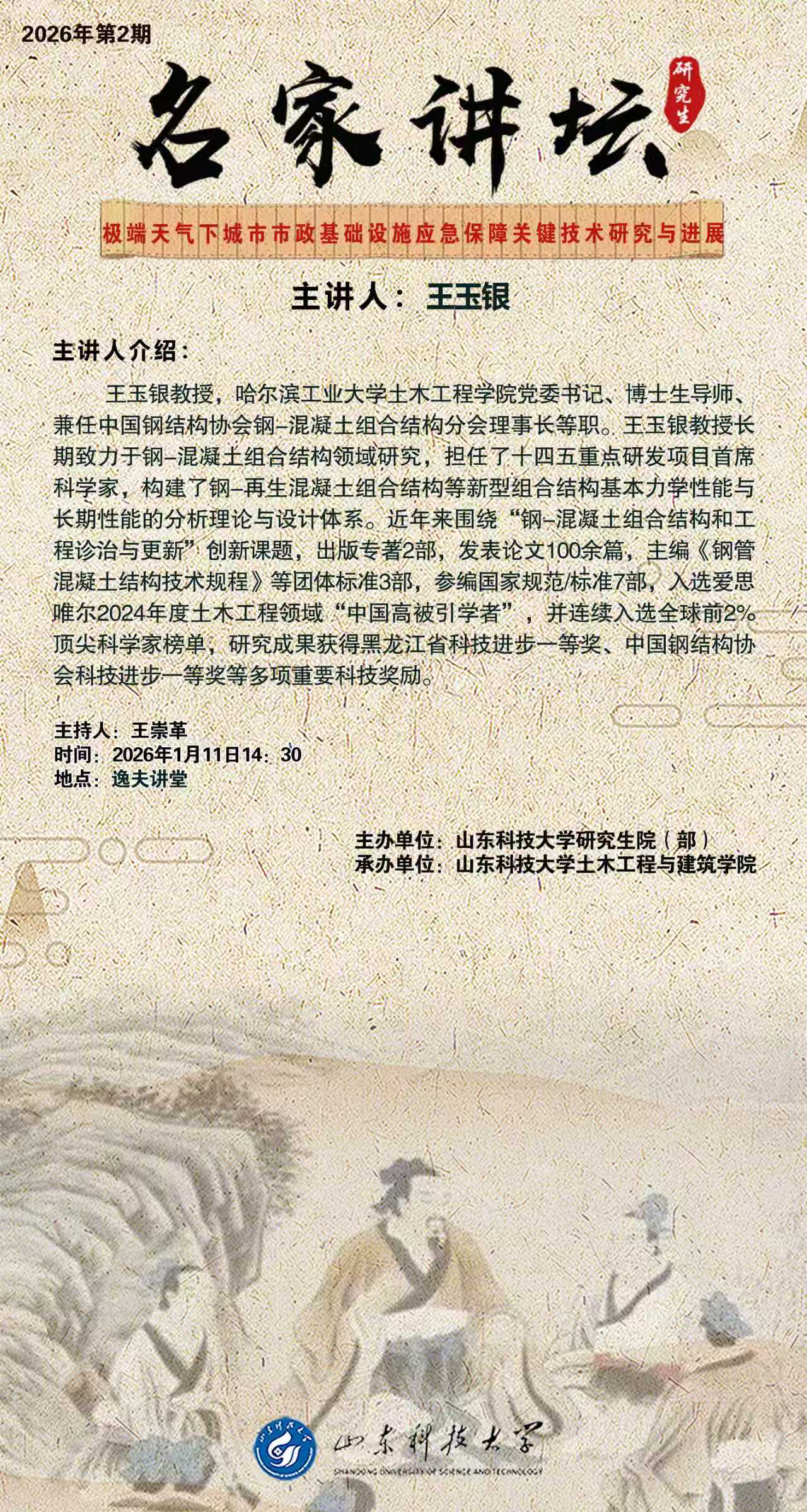 “名家讲坛”2026年第2期:极端天气下城市市政基础设施应急保障关键技术研究与进展(总1104期)