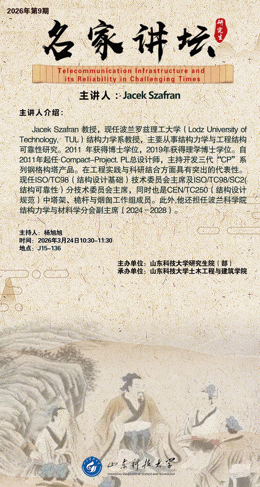 “名家讲坛”2026年第8期:Practical Approach to Determining Load and Resistance Factors in Reliability-Based Design(总1110期)