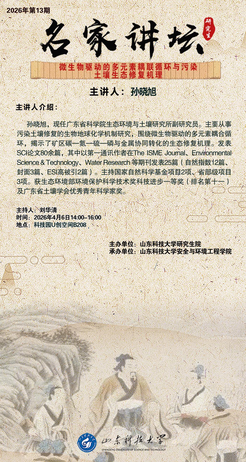 “名家讲坛”2026年第13期:微生物驱动的多元素耦联循环与污染土壤生态修复机理(总1115期)