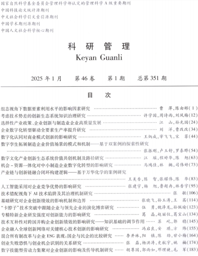 近日,伟德bv国际体育经济管理学院王炳成教授团队在《科研管理》发表题为“数字化认同对商业模式创新的影响研究”的文章。