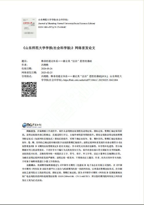 近日,伟德bv国际体育文法学院冯艳艳副教授在《山东师范大学学报(社会科学版)》发表题为“韩非的道论体系——兼论其‘法治’思想的基础”的文章。